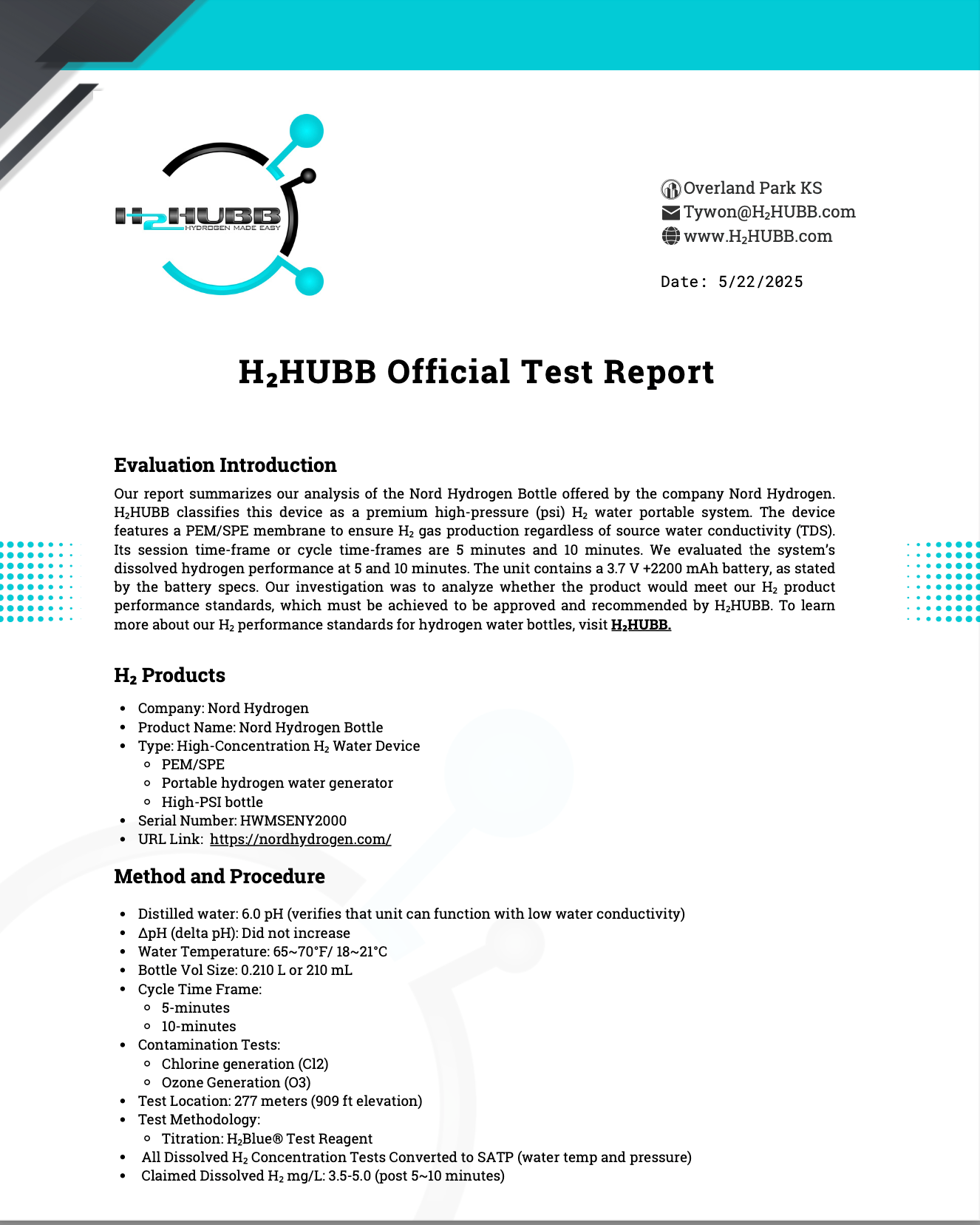 "The Nord Hydrogen Bottle står blandt de sikreste hydrogen vandflasker på markedet, efter at have gennemgået næsten enhver større sikkerhedsevaluering relevant for denne kategori."